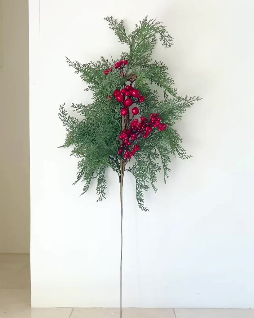 Add festive elegance to your holiday arrangements with this 36" Red Berry Cedar Stem. Featuring lifelike “real touch” cedar greenery accented with vibrant red berries, this high-quality artificial stem is ideal for vases, centerpieces, wreath accents, and seasonal floral designs. Reusable year after year for a fresh, classic Christmas look.