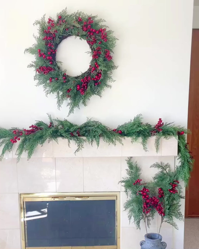 Bring timeless holiday charm to your home with this 26" Red Berry Cedar Wreath. Crafted with lush “real touch” cedar greenery, this high-end artificial wreath is accented with vibrant red berries for a classic Christmas look. Perfect for front doors, mantels, walls, or above fireplaces, it offers the natural beauty of fresh-cut cedar without shedding or drying out.